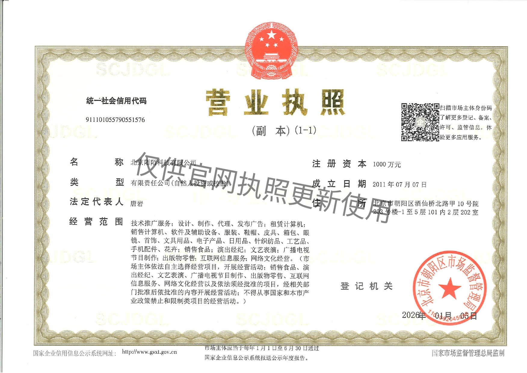 营业执照: 911101055790551576