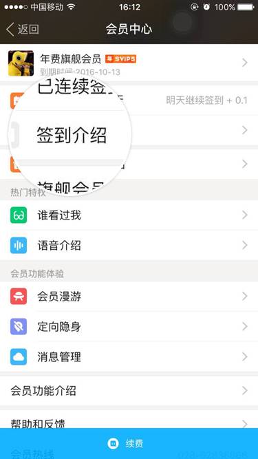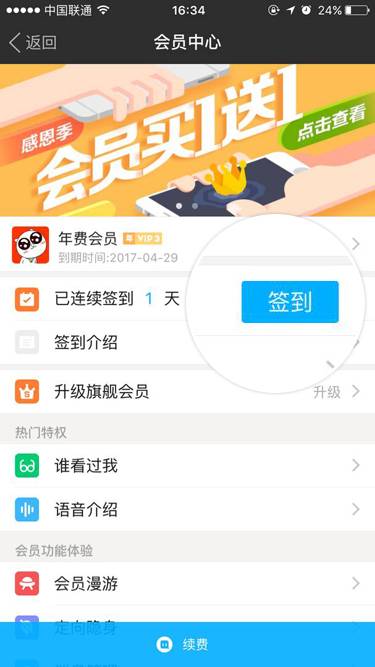 会员签到可加速会员成长值,请参考以下步骤操作: